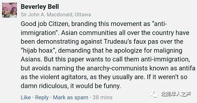 当然,读者朋友们也不是傻瓜。上面这位朋友就直接批判,对antifa那样的暴力组织,却只字不提,将大家对伊斯兰头巾骗局的抗议说成是反移民,这如果不是太荒谬,就是太有趣。