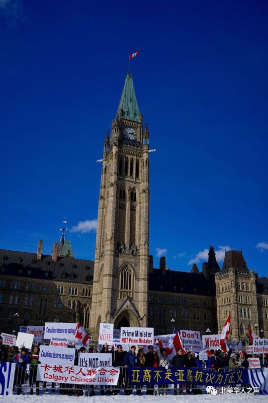 + [6 d t5 k" H9 q0 U# B2018年2月18日,各地华人朋友更是走到了加拿大首都渥太华的国会大厦前。我们反对种族主义,我们要公义,我们要道歉,我们不能再沉默下去!