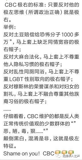 9 O, N8 m$ B/ S" b, W结果,CBC居然不花笔墨谴责下这些暴力分子,反而把我们同胞组织的和平集会游行说成是极右,说成是反移民!这真是加拿大的指鹿为马!