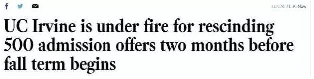 今年8月初加州大学欧文分校在开学前取消了500名学生的入学