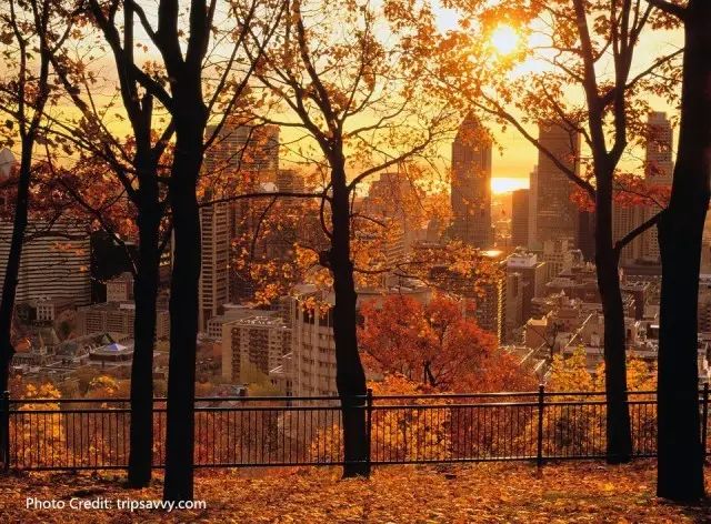 皇家山(Mount Royal) 蒙特利尔的制高点,山顶有观景台可以俯瞰全城,山腰则有一个人工湖是最佳赏枫点。