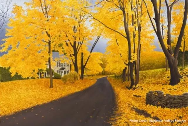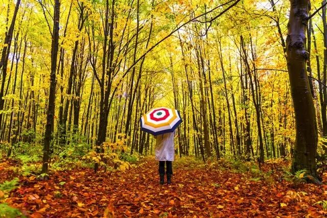 ' K/ Q# I( h1 ^9 i% z/ H如果还有蜿蜒的小路,两边的树林被忽明忽暗的光线穿透,和着红黄橙绿的秋天韵律,那才是人间美境;