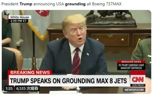 而就在刚刚,美国总统川普也宣布美国立即停飞所有波音737 MAX 8客机。