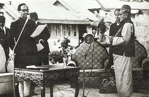 顿珠南嘉(左三)一直想摆脱印度的控制