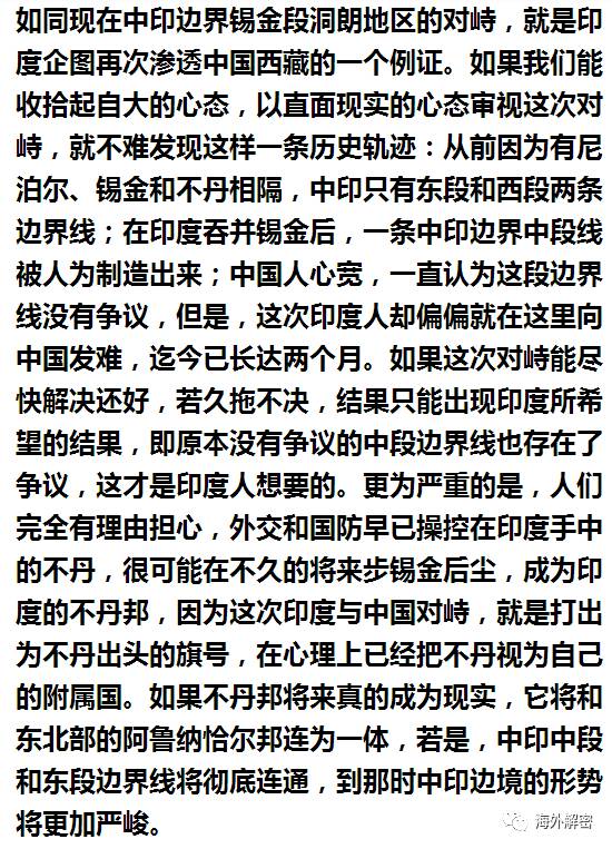 试想,如果当年中国施以援手,阻止印度吞并锡金的图谋,现在何来“中印边界锡金段对峙”?过去中国与锡金的边界,如今变成了中国与印度的边界。当年忽略过去的事件,现在造成如此巨大的反弹。反过来说,印度只踢了一脚,却踹开了三道门。