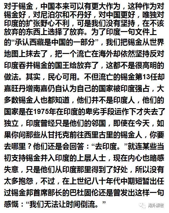 惜哉,锡金!往者不可谏,来者犹可追。希望今后中国能走好国境线上的每一步,唯有如此,多年以后,我们自己才不会后悔,后世子孙才不至唏嘘、慨叹。