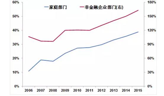 如今,我国家庭杠杆率已逼近60%,而非金融企业杠杆率更是夸张。从2006年的106.5%上升到了2015年的162.8%,这一水平已经高于日本1990年房产泡沫之时143.8%的峰值。